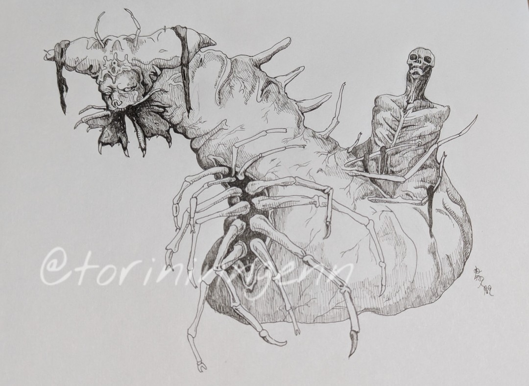 かつて祈りを捧げ、今は捧げられるもの #ペン画 #イラスト #クリーチャー #illustration #drawing