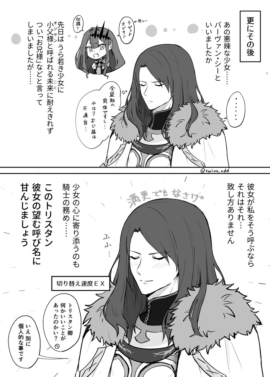 5679 33.2K トリスタンとバーヴァン・シーと何様の漫画 イベントで会話したので記念再掲 1/3 23/08/14 07:04