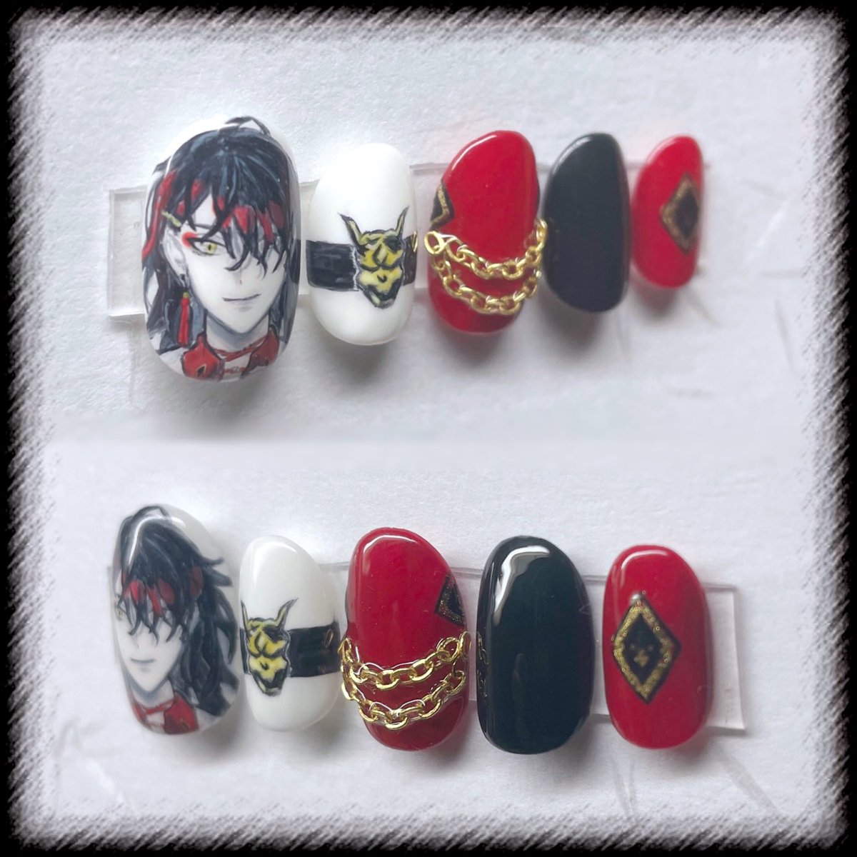 できたーーー!!!!!💅✨💕 #Nijisanji #NIJISANJI_EN #NijisanjiEN #Luxiem #lucakaneshiro #drawluca #VoxAkuma #Akurylic #ShuYamino #YaminoArt #MystaRias #MystArt #IkeEveland #Ikenography #痛ネイル