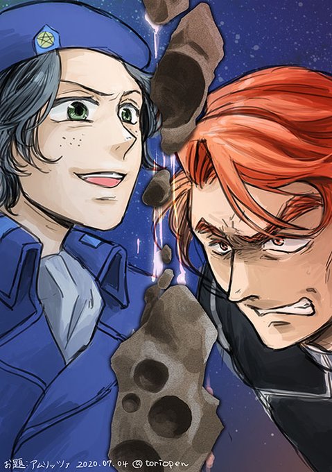 #銀英伝深夜のワンドロワンライ一本勝負 お題:笑顔 いつもはノイ絵ですがisgr絵の方が合いそうなネタだったので…(めちゃくちゃ難しかったです) ノイエでも早くキャッキャとふざけてほしいな〜