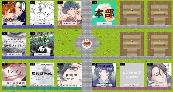 #伊達と酔狂で祝福を 当日の会場の様子は現在このようになっております。(サークルカットなど変更になる可能性があります) イベント会場の店舗前通路を取り扱いのカップリング等によって色分けしておりますので、見て回る際の参考にしてください。