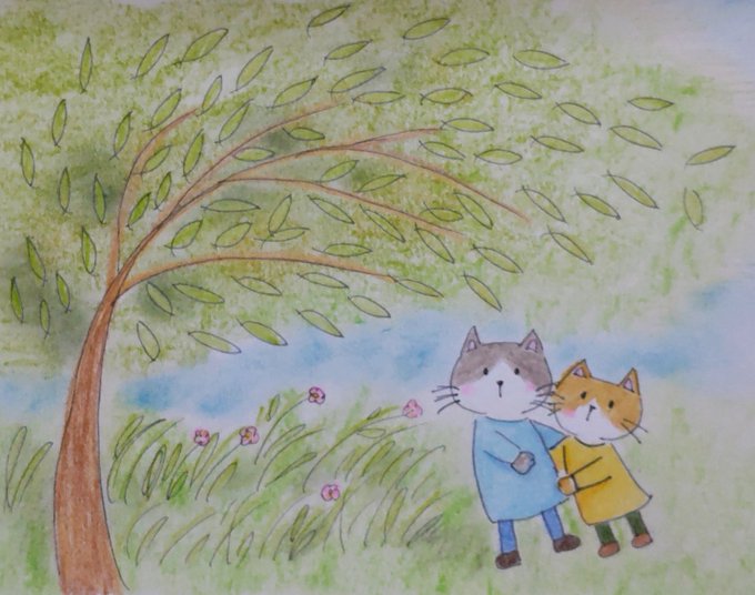 昨日も時々風が強かった〜。明日は暑くなるし週末は寒くなるらしい。 いそがしいにゃ〜。 #ゆるいイラスト #ねこイラスト #みんなで楽しむTwitter展覧会 #イラスト好きな人と繋がりたい #絵描きさんと繋がりたい