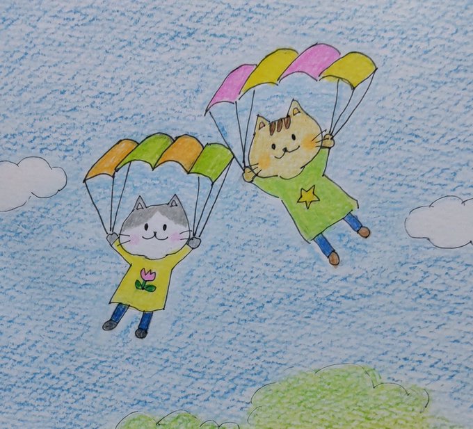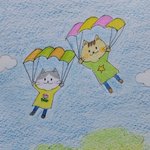 今度は空!風に乗ってみました。 このところ風の強い日が多いですね。春の嵐!? 今日は黄砂に注意です! #ゆるいイラスト #ねこイラスト #みんなで楽しむTwitter展覧会 #イラスト好きな人と繋がりたい #絵描きさんと繋がりたい