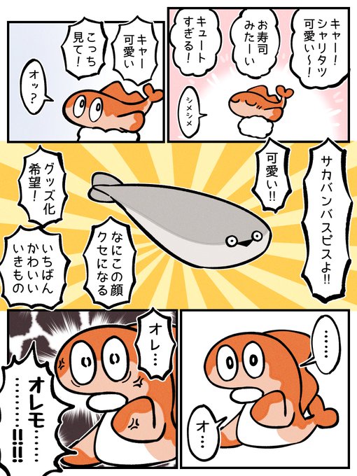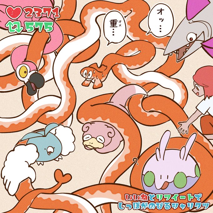 いいねとリツイートでしっぽが1cm伸びるシャリタツ🍣 伸びすぎてえらいことになりました!!可愛いやつになると…思ってたんだけど… な が い 伸びたのはしっぽなのか腹なのか