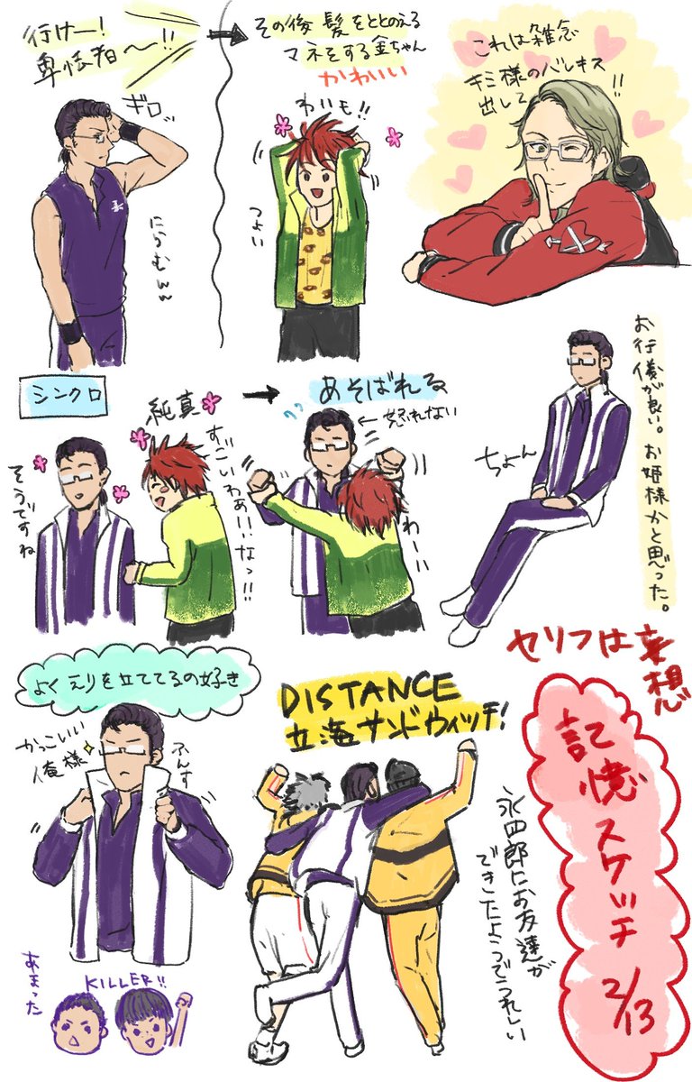 72 353 212 新テニミュ、木手永四郎の記憶スケッチ。 金ちゃんと絡むの最高!連日見たから混ざっているかも…🤤 22/02/15 19:41