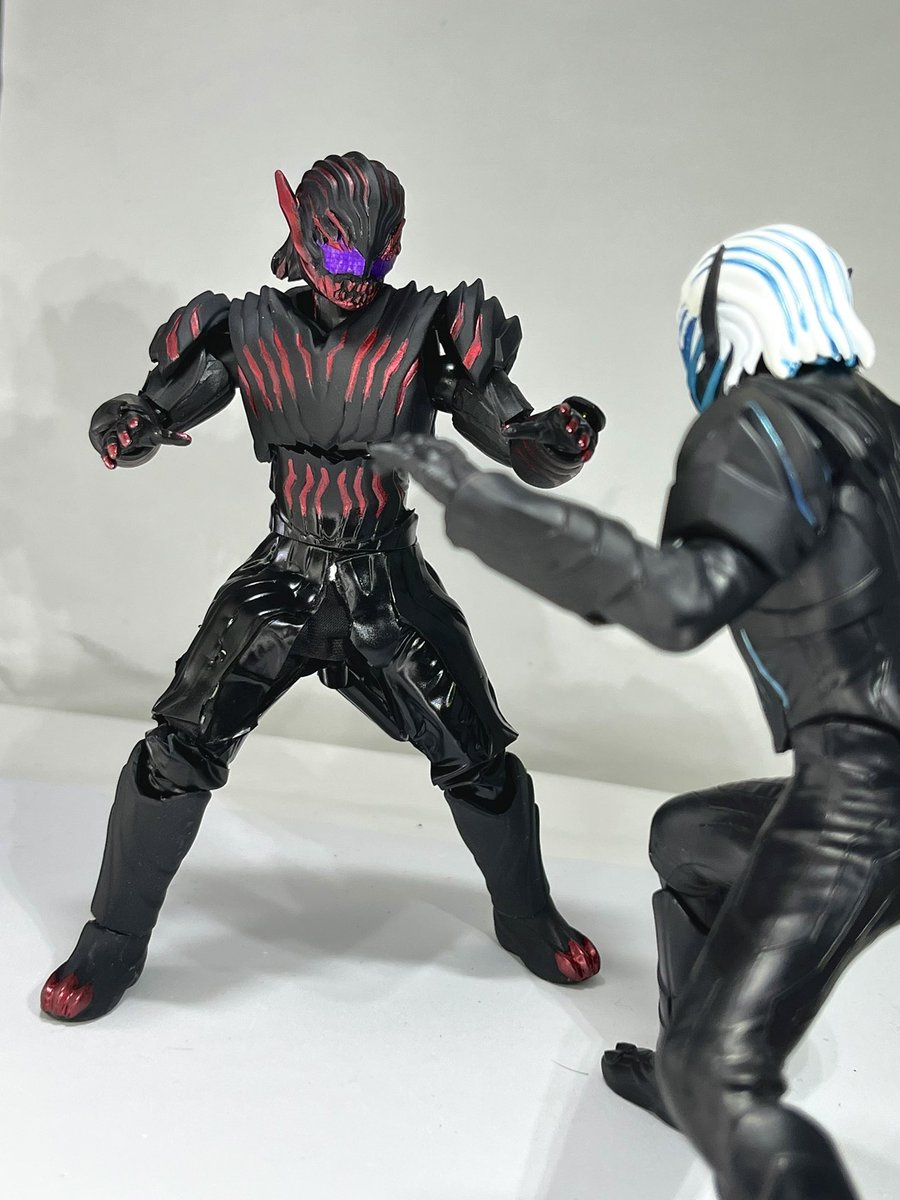 フィギュアーツ改造にて 仮面ライダーファルシオンを作りました。 グラッジ・デントを持たせるとデザストが変身したようになるようにして、前回作ったエモーショナルドラゴンと並べればバハトが変身したようにもなるようにしました #ニチアサフィギュア改造部 #造って遊ぼ twitter.com/toritori9314…