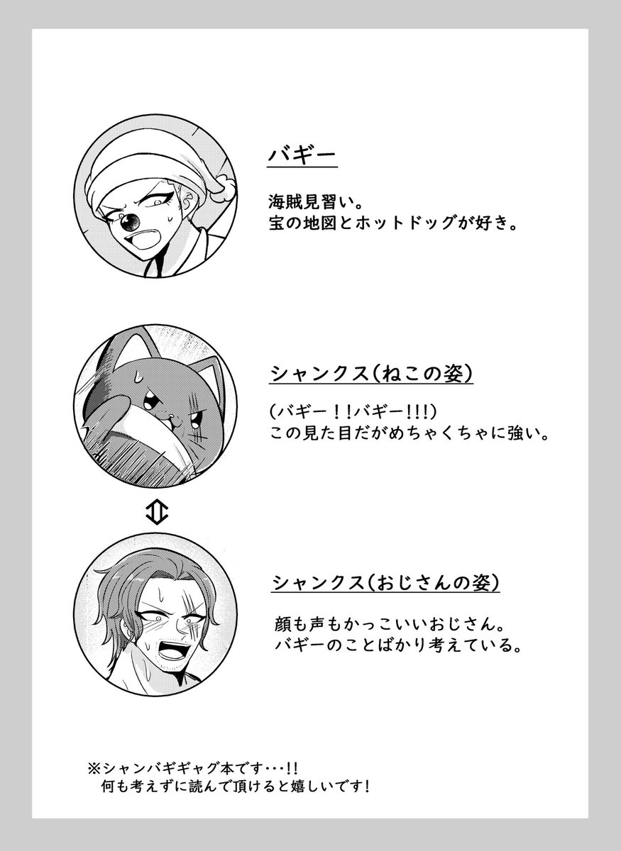 53 490 10/16 GLC26で頒布予定の シャンバギ新刊サンプル①です! 「ねこときどきおじさん」 普通のねこを拾ったつもりが興奮すると人間の姿(おじさん)に変わってしまうという謎設定のシャンバギギャグ本です。 (1/2) 22/10/01 21:05
