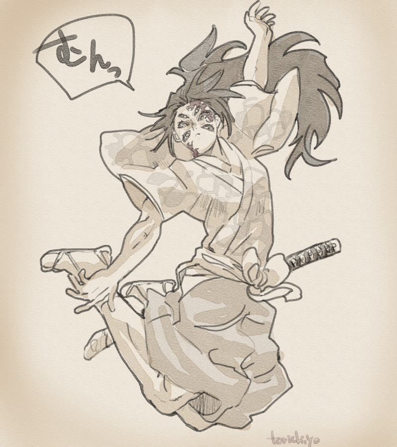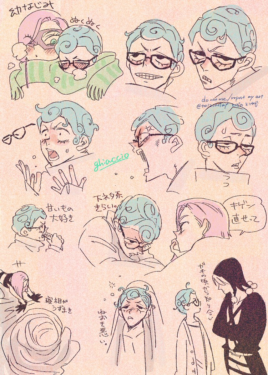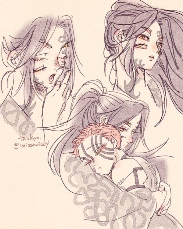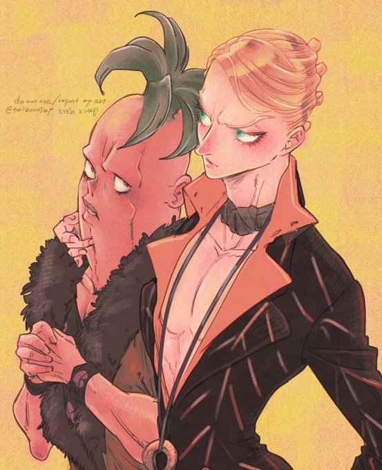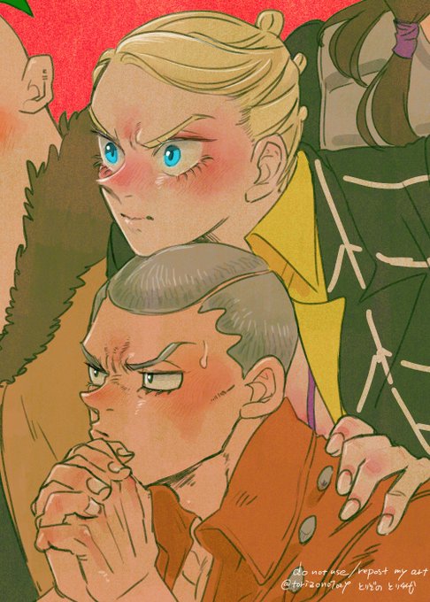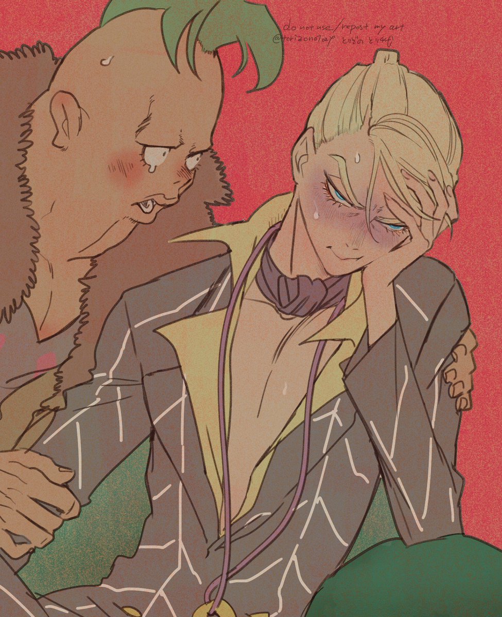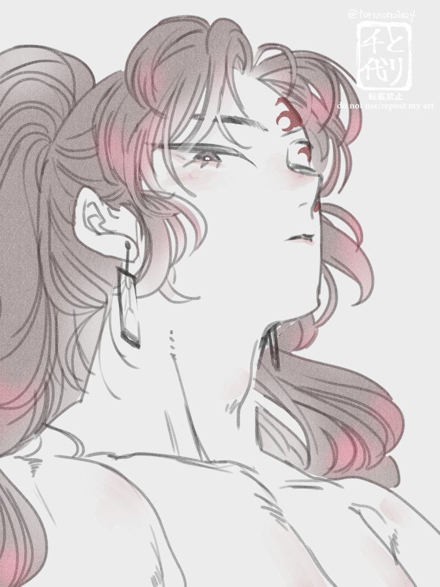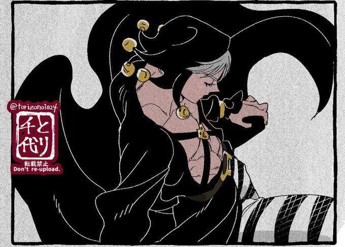65 412 Risotto 彼の戦法は匂いや音にかなり気を遣うだろうから、衣服は音を抑えるため極力布擦れのない柔らかい素材のイメージで描く。それがだんだん侵食してきて「彼」自体を柔かそうに描くようになった。鍛えられた質の良い筋肉は脱力時ふわふわだから。 23/08/08 19:28
