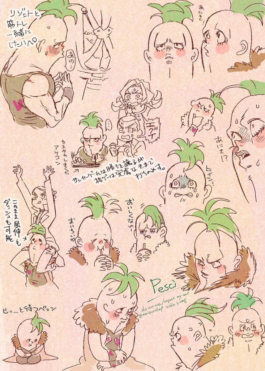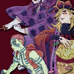 Risotto 彼の戦法は匂いや音にかなり気を遣うだろうから、衣服は音を抑えるため極力布擦れのない柔らかい素材のイメージで描く。それがだんだん侵食してきて「彼」自体を柔かそうに描くようになった。鍛えられた質の良い筋肉は脱力時ふわふわだから。