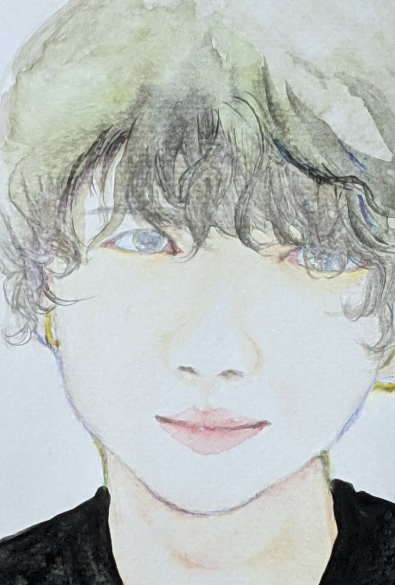 髪の毛ワカメだいぶ解消…… しかしクリクリ髪の毛はどう描けばいいの? 今日も推し絵🥰 #BOOOST の ゆぅきさんʅ(* ᷄ω ᷅ )ʃ #ukey64 #Ukey #絵描きさんと繋がりたい #みんなで楽しむTwitter展覧会 #イラスト好きな人と繋がりたい #水彩 #アナログ #イラスト #初夏の創作クラスターフォロー祭り