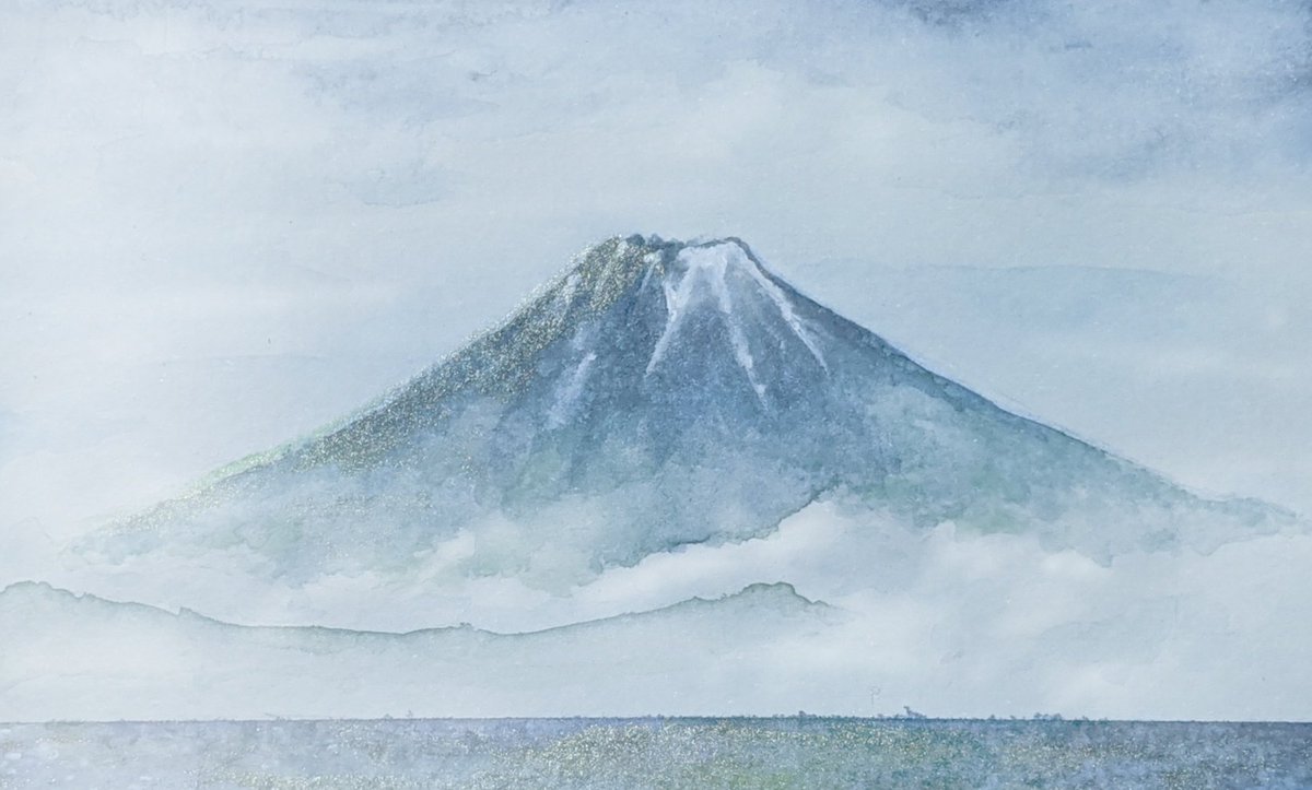 BOOOSTの遠征で新幹線で移動中にみた富士山が霧がかっていた風景から急に見えたのがとても感動したなぁᙏ̤̫⑅ #絵描きさんと繋がりたい #みんなで楽しむTwitter展覧会 #イラスト好きな人と繋がりたい #夏の創作クラスタフォロー祭り #水彩画 #アナログ #イラスト #富士山 #ウィンザーアンドニュートン