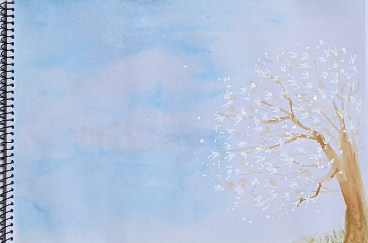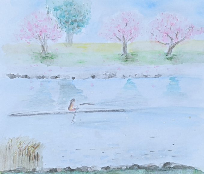 昨日の散歩で写生しました〜 絵を描いてスマホで写真撮ってます笑 #水彩画 #写生 #風景画 #桜 #絵描きさんとつながりたい #絵描きさんと繋がりたい #みんなで楽しむTwitter展覧会 #お花見2021