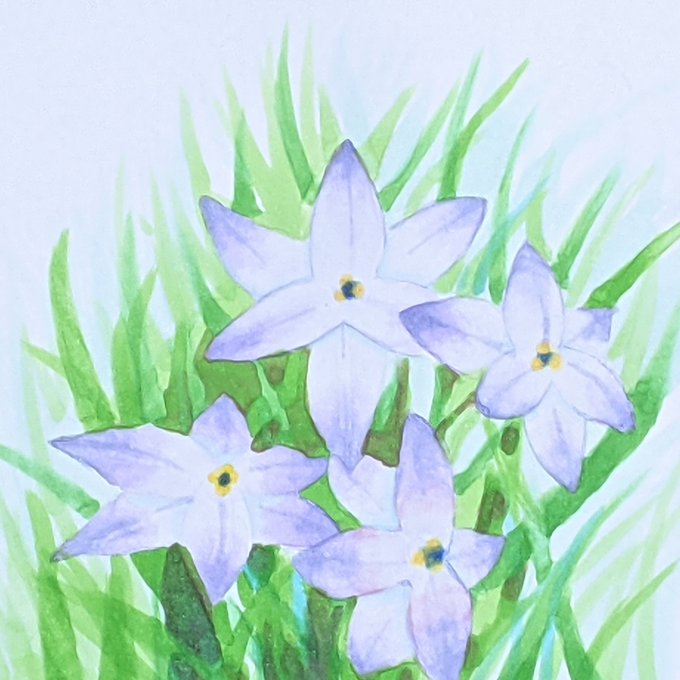 モロモロとなかなか溶けない絵の具をねるねるねるねがごとくねりねり溶かす、すごいリハビリになってる! いつかの散歩中道端に咲いていた 名前知らずのお花です #絵描きさんと繋がりたい #みんなで楽しむTwitter展覧会 #イラスト好きな人と繋がりたい #春の創作クラスタフォロー祭り #水彩 #花の絵