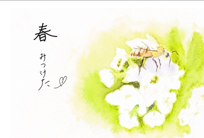 出会った頃から @mn1535 さんの 写真と文字が大好きで私の絵に文字入れお願いしちゃいました #水彩画 #ミツバチ #絵描きさんと繋がりたい #みんなで楽しむTwitter展覧会 #お花見2021 お絵描き時のBGMは #BOOOST のYouTube youtu.be/6W86Q2eKgJA 今日リリースの「向日葵」 youtu.be/xijMkLHLHbI