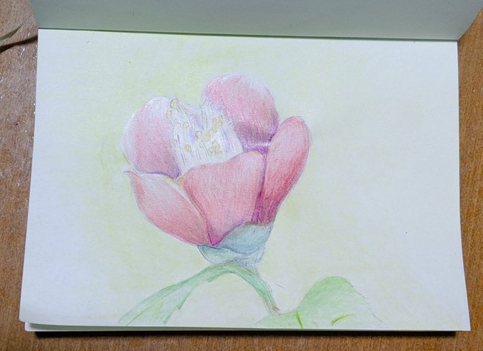 ぺらぺらの雑記帳だけど 色鉛筆なら色塗りできるかも (両面は無理だけど) ちゃんとした色鉛筆も欲しくなってしまった……w でも子どもが小学生の頃に使ってた色鉛筆がけっこう残ってるから出来れば使い切りたいな #雑記帳 #色鉛筆画 #イラスト好きな人と繋がりたい #絵描きさんと繋がりたい