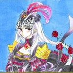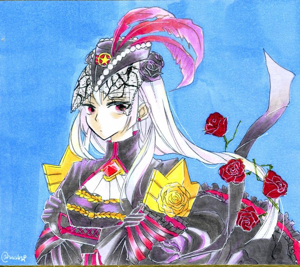 17 35 花とキャスト② スカーレットさんと牡丹。牡丹です。牡丹だよ。 笑ってるのか悲しいのかそのほかなのか、牡丹で口元が隠れてるからわからない。(っていうのを目指してたのよ) #wlwイラスト 17/05/30 23:44