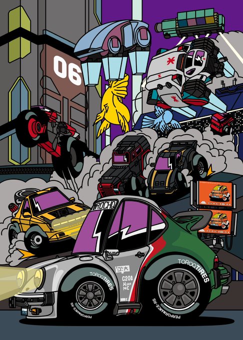 34 124 #今年描いた絵の一番お気に入りを貼る チョロQパッケージ風のサイバーパンクが描きたい欲が満たせたな。 22/12/10 00:35