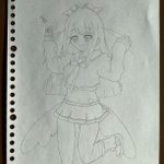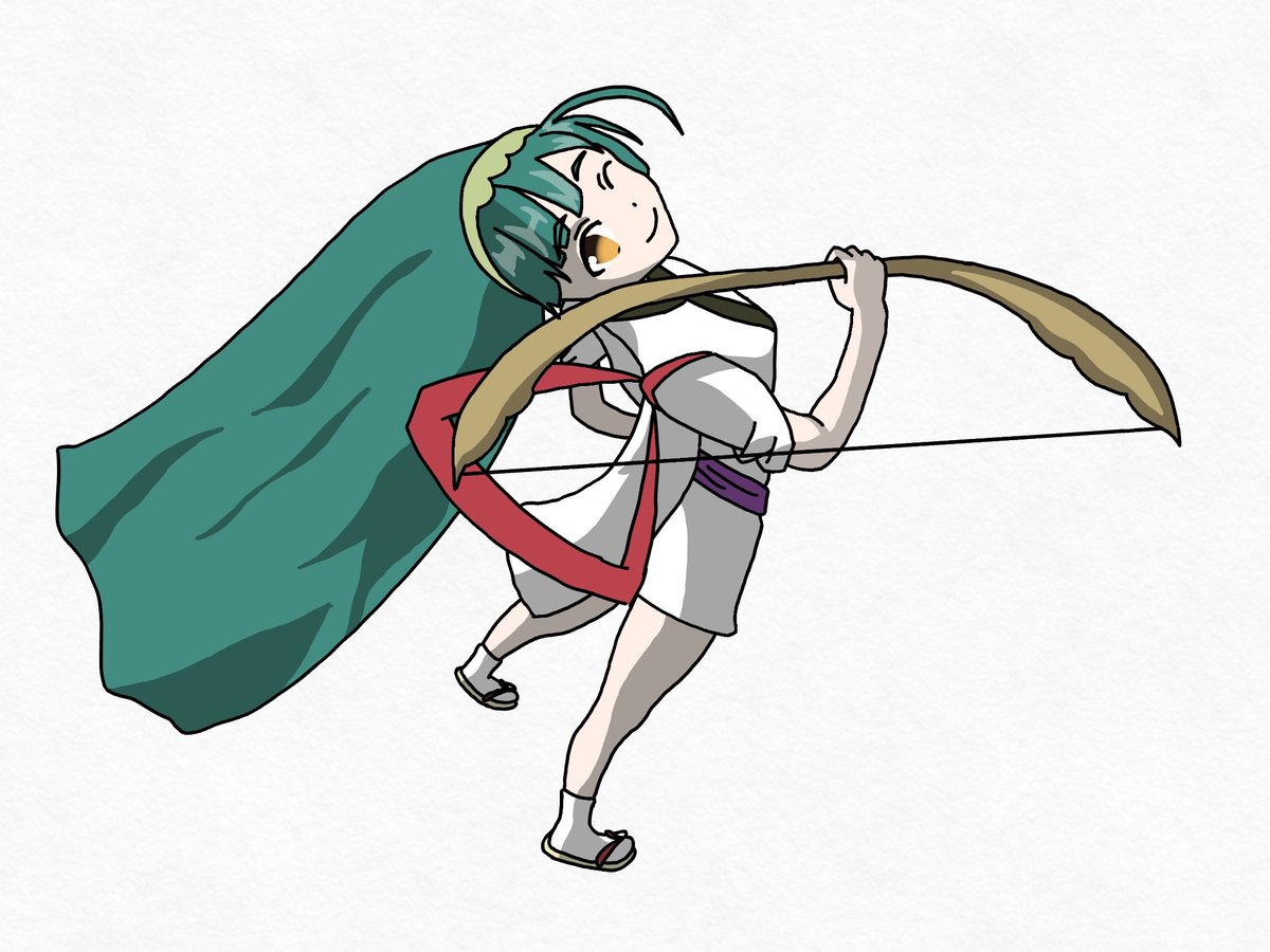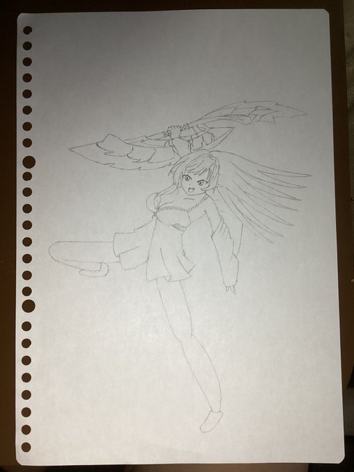 ルナガロンを持って駆けつけるきょうさん! ポニテに躍動感って難しいですね。 今気づいたけどルナガロンの上下逆だなこれ #にときょーあーと