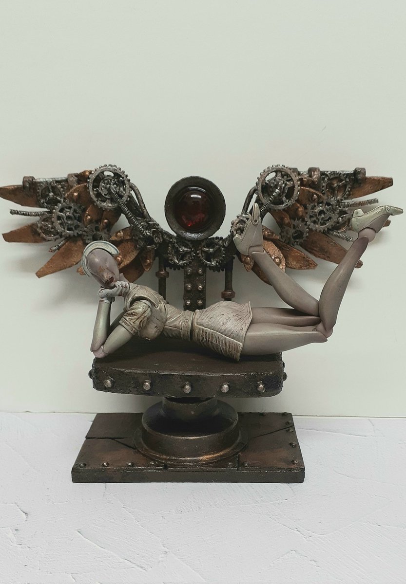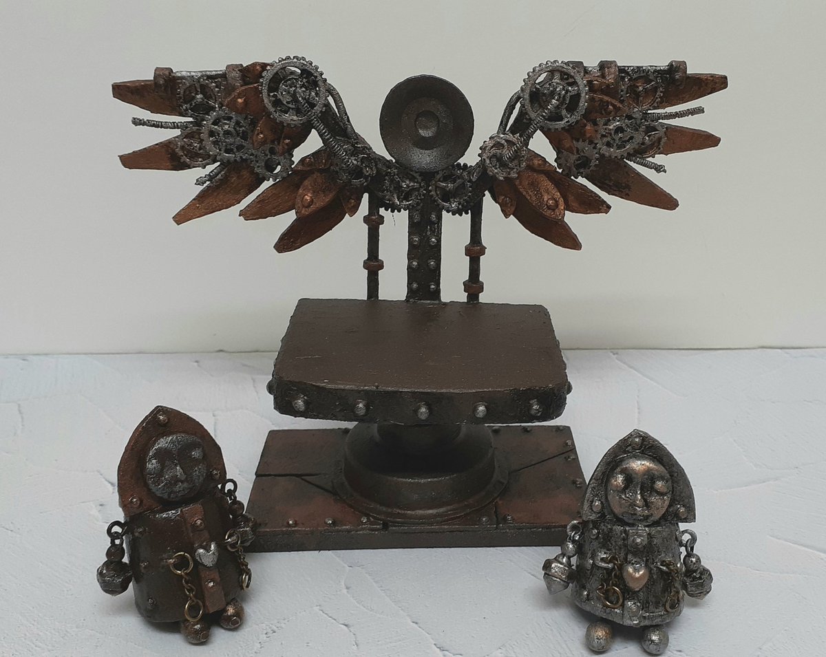 小さい子達用の椅子「イカロス」です 今、大まかに色塗った状態 全体的に暗いのでもう少し色にメリハリが欲しいところ カッコいい作品に仕上がると思う😄 #オビツ11 #オビツろいど #スチームパンク