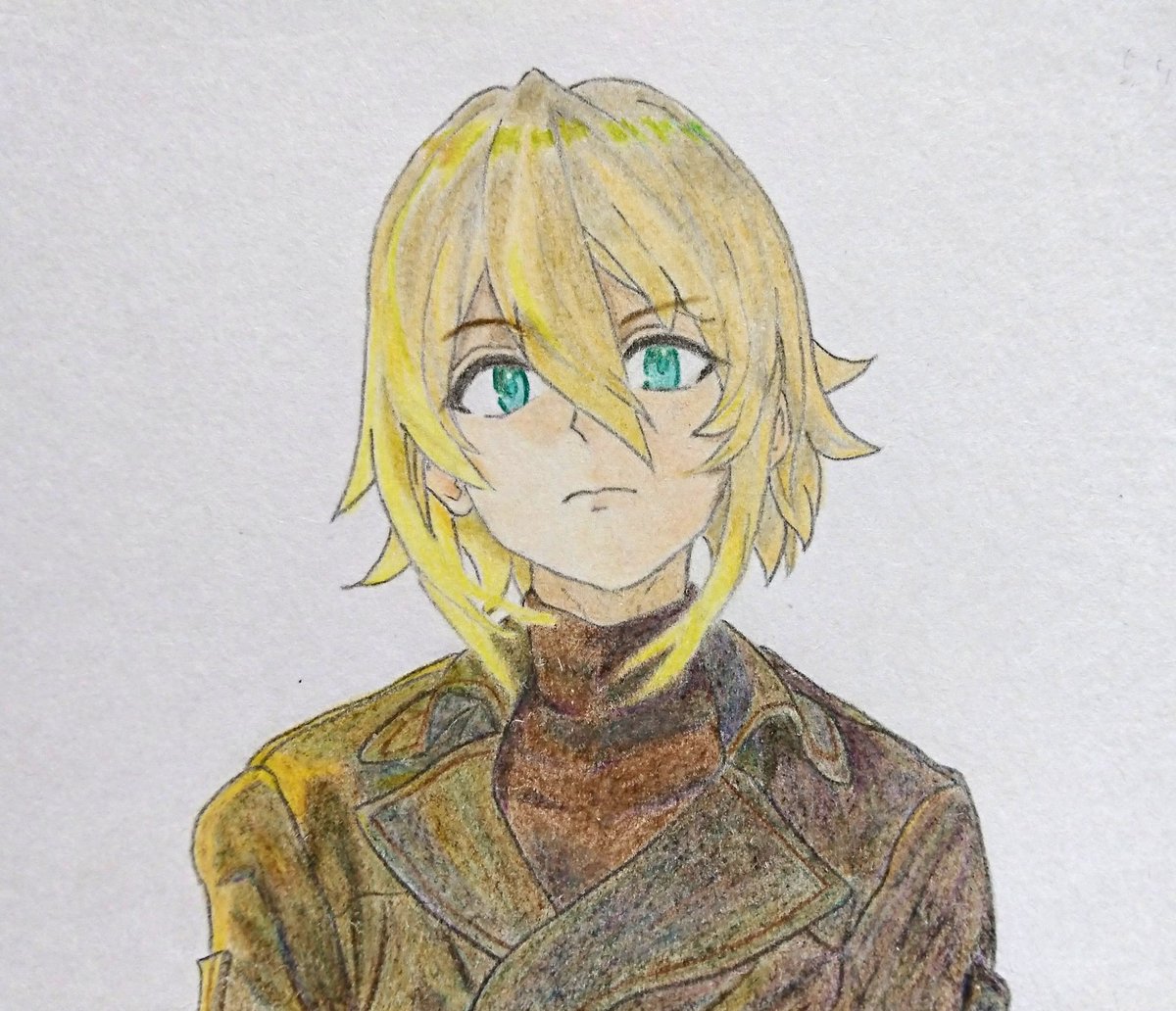 9月26日なので、ハルトを描きました! 10話のファイド目線の「あいつらとなら特別偵察も楽しいよな。ファイドお前も来るよな!」って言ってる夕焼けのシーンからの、切り替わった翌日のあの映像はすごく辛かった。 #エイティシックス #Eightysix #色鉛筆