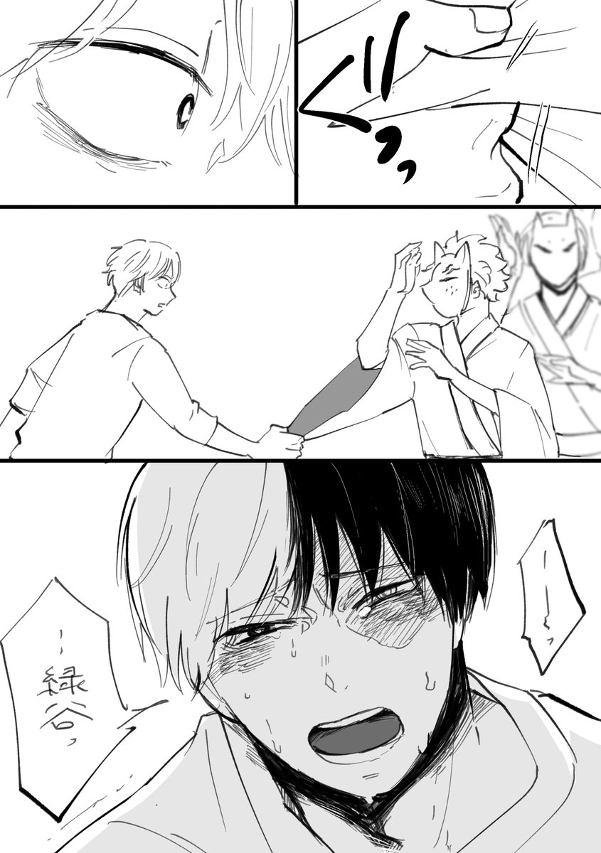 ワンドロ用に描いたのですが、ちょっぴりしねた要素があるので……。 盆踊りは亡くなった方が混じっていてもわからないように顔を隠してやるところもあるという事で、mdryくんを生者の世界へ引きずり戻すtdrkくんを描いてみました。