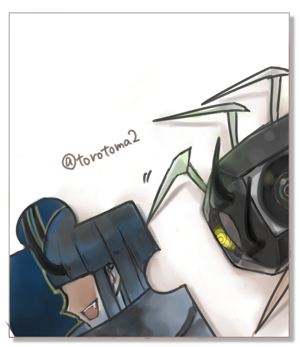 16 56 #アフト版深夜の真剣お絵かき60分一本勝負 お題:SNS向け画像 「トリオン兵乗ってみた」 「降りなさい💢」 19/09/28 22:52