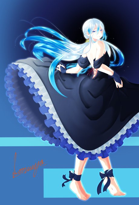 黒ドレスー!! 青の印象が強めになった模様… #絵描きさんと繋がりたい