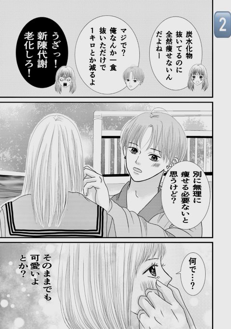 一ヶ月半粘ったけど、全ボツになってしまった… 嫌味な女にはしっかり嫌味で返し、大事な彼女には手を握り返すことで大丈夫だよ、と知らせる彼氏がお気に入りのワンシーンなので、見ていただけたら喜びます! #漫画が読めるハッシュタグ #創作漫画
