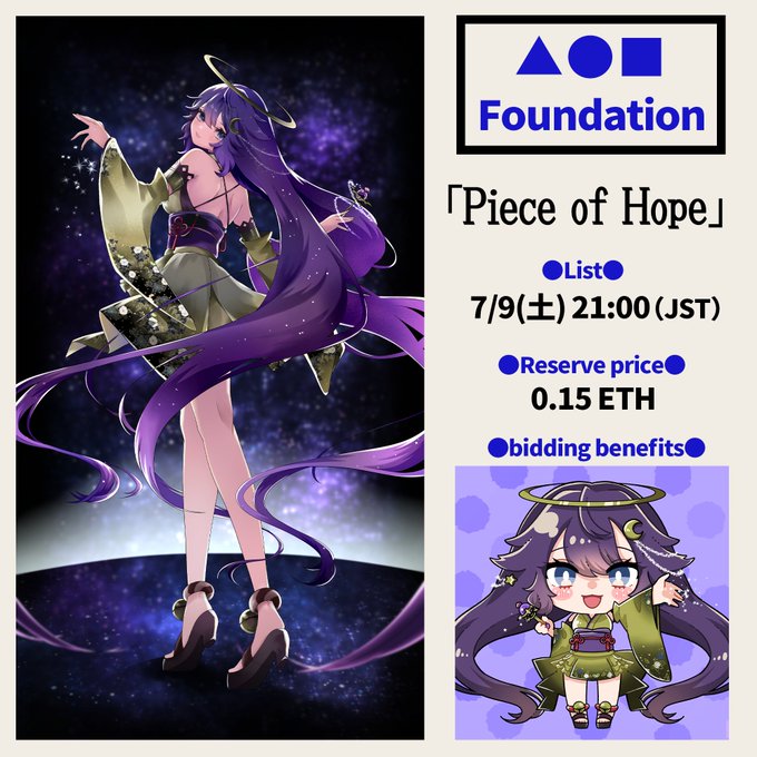 💫「Piece of Hope」👘 ✅7/9(土) 21:00(JST) ✅Price:0.15ETH~ ✅bidding benefits Check out this NFT on @foundation! 🌐 foundation.app/@aqross/kgf/2 FND2作品目は、星の妖精💫🧚♀️ 彼女が星に込めた願いとは? 応援いただけると嬉しいです✨ #NFT #NFTart #NFTCommunity #Foundation #FND