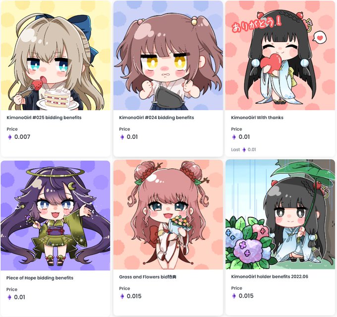 KimonoGirlのちびちゃん達が、二次流通に出てますよ🎉👘 お求めやすい価格になってますので、可愛らしいちびちゃんを見てあげてくださ~い🥰👘 ✅opensea.io/collection/kim… #NFT #nfts #NFTartist #NFTCommunity #NFTJPN