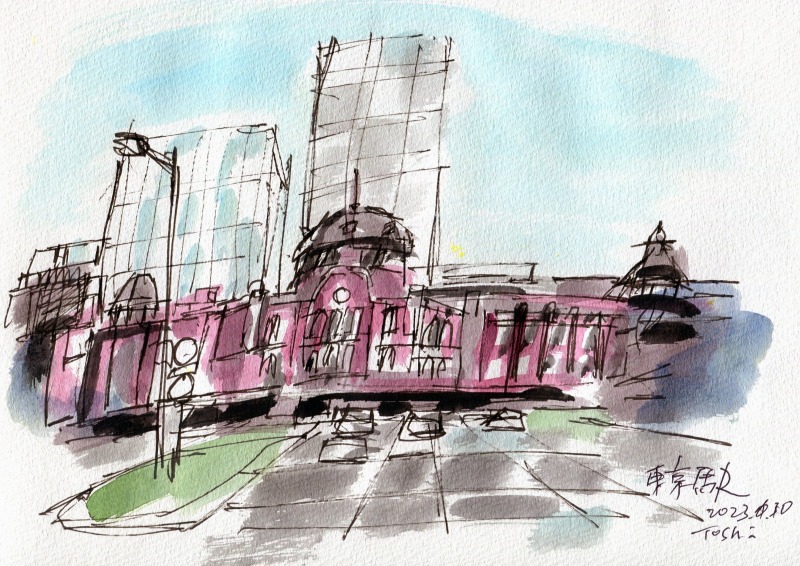5 46 上京1日目は浜離宮、美術館巡り。 東京駅です。 #東京駅 #ピグマペン #スケッチ #ペン画 #水彩画 #絵日記 #picture #絵画 #アート #art 23/06/30 22:45