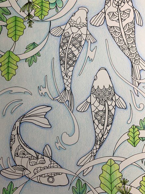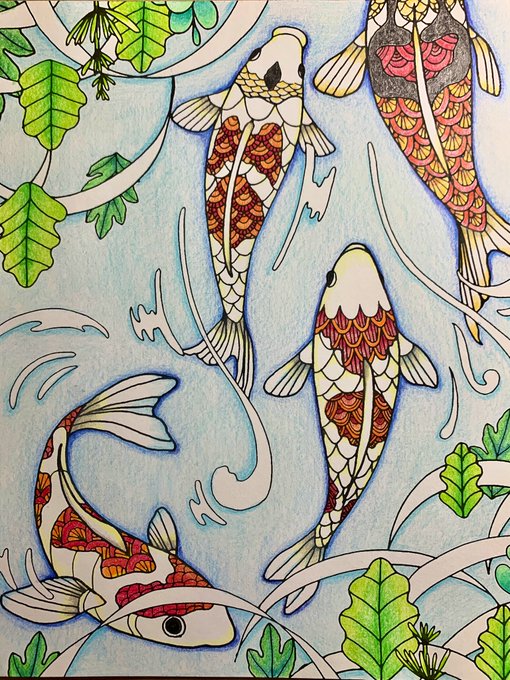 「漣」完成 #大人の塗り絵 #マツダケン塗り絵集 #色鉛筆