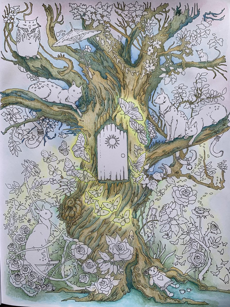 完成 重ねすぎて紙がボロボロに💦 細かい所は色鉛筆で加筆しました #大人の塗り絵 #森の少女の物語 #井田千秋 #インクテンス #ポリクロモス色鉛筆