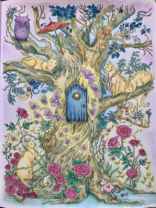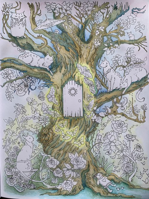 木がいい感じに塗れたので途中経過をUP #大人の塗り絵 #色鉛筆