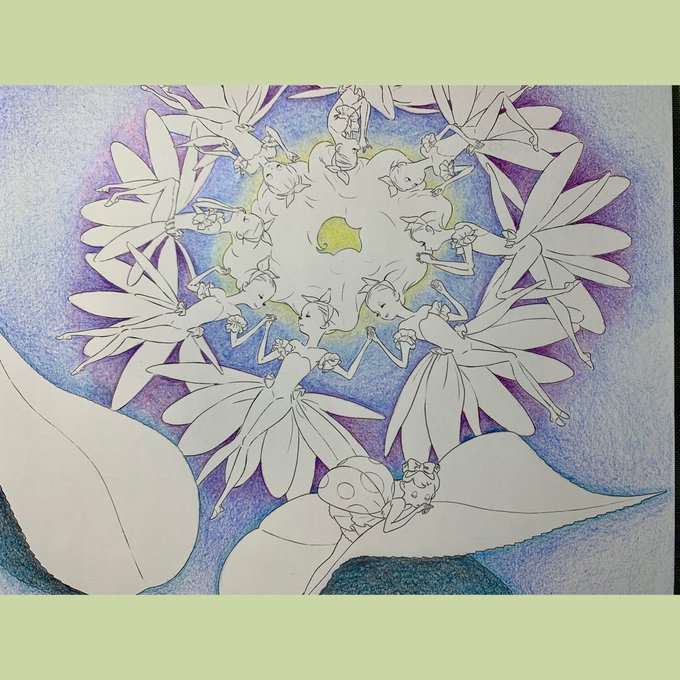今回は失敗しないように背景から #大人の塗り絵 #ふしぎの国の妖精たち #色鉛筆