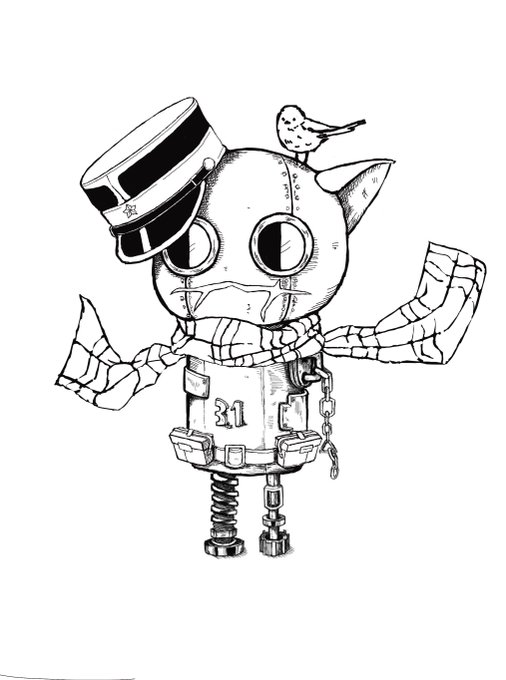 #illustration #myart #drawing #イラスト #イラスト好きな人と繋がりたい #絵描きさんと繫がりたい #ゆるイラスト #ロボット #ゴールデンカムイ #杉元佐一 オリキャラロボ2号君をゴカムの杉元仕様にしてみました🤖