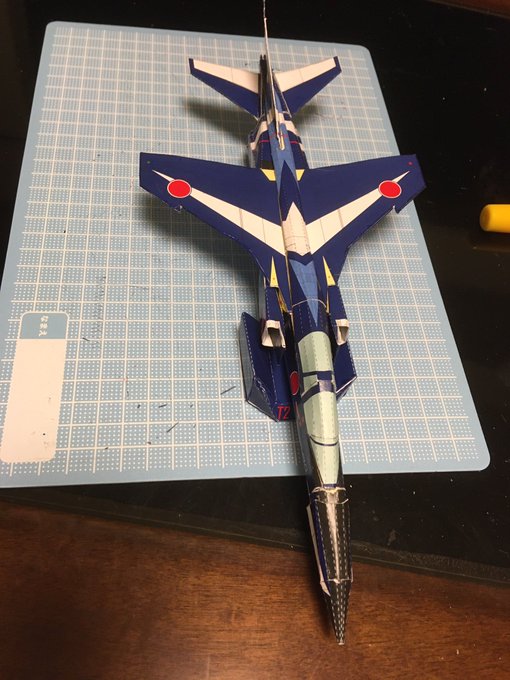 0 2 そして 旦那が勝手に作り出したブルーインパルス おい、翼がちゃんと折り込みしてないから のぺっとしとるやないか! #ペーパークラフト #ブルーインパルス 20/05/07 23:09