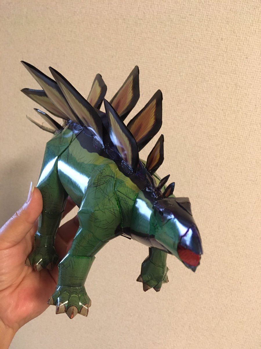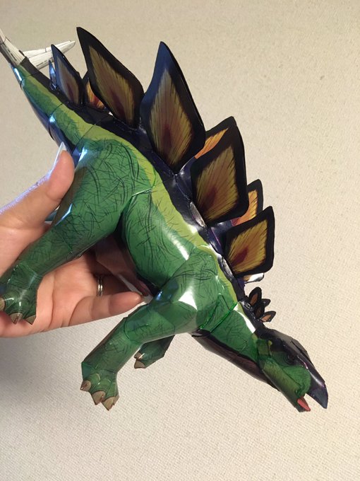 で、昨日完成した これはCANONのダウンロードで作ったペーパークラフト ステゴザウルス チビ2への とりあえずの誕生日プレゼント 本物見た事ないけどリアリティあるー!ってなる不思議。 CANONの本気度が凄い。 #ペーパークラフト #ステゴザウルス #恐竜 #CANON