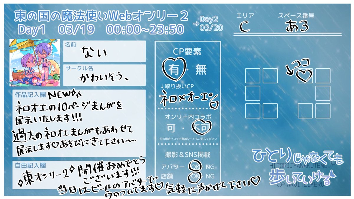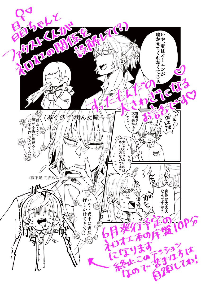3/19 東オンリー「ひとりじゃなくても歩いていける」(1日目)にC:あ3で参加させて頂きます♡ ネロオエの新作漫画(10ページ)を展示致します!晶ちゃんとファウストがネロオエを誤解(?)しててんやわんやな話です^^^遊びに来てね #東オンリー2 #東オンリー2_サークル情報 #東オンリー2_一日目
