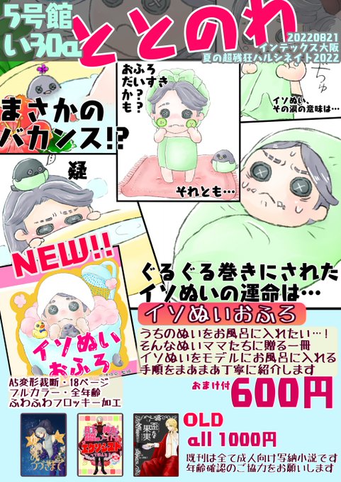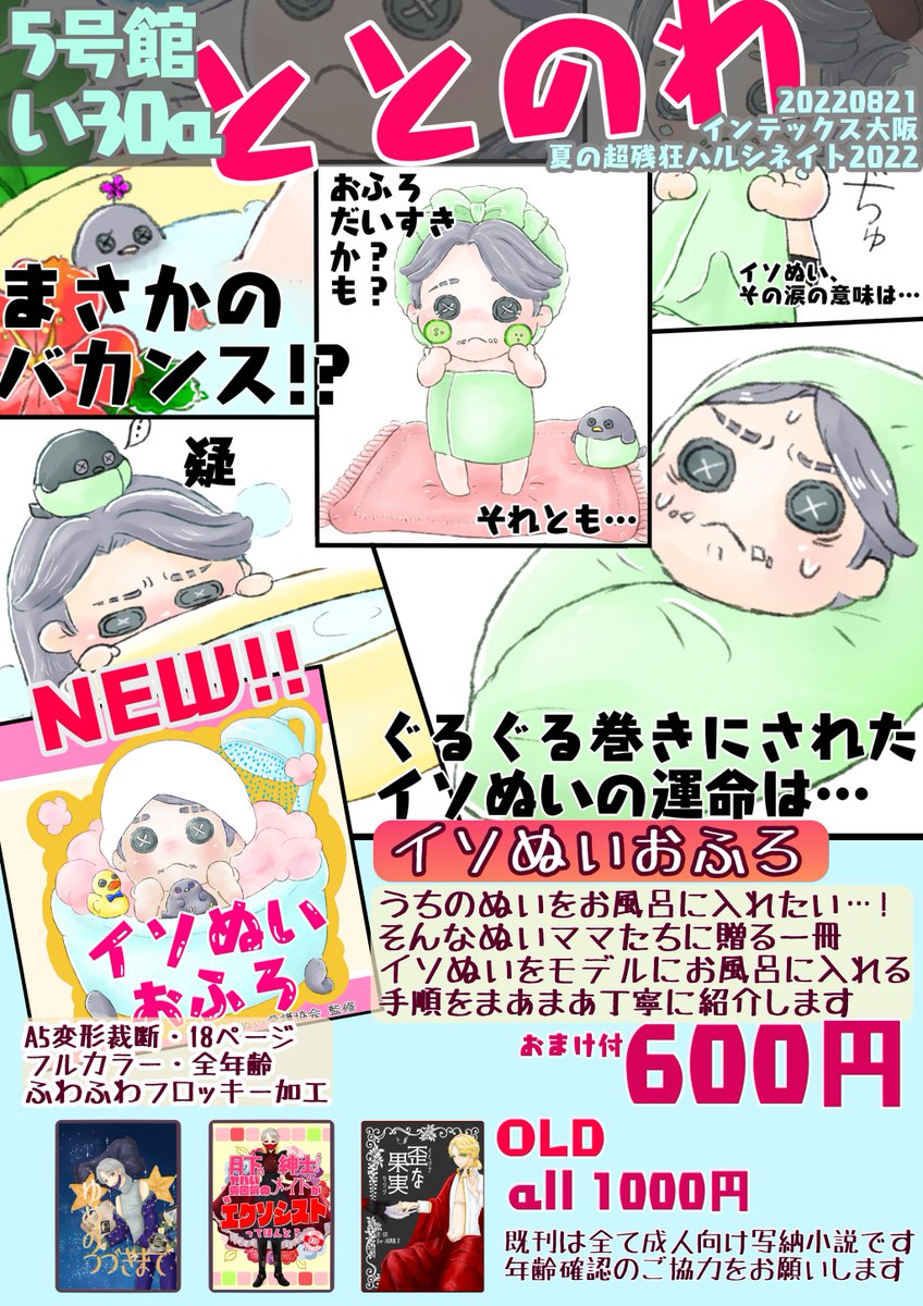 5月4日超残狂ハルシネイト2022 お品書き | toto@ #pixiv pixiv.net/artworks/97971… 2022/5/4 超残狂ハルシネイト 【東2 キ45a】ととのわ 新刊・既刊・すだまさんの委託イラスト集ございます! 無配も間に合えば…! #写納プチオンリー #写し残されしは黄色の薔薇