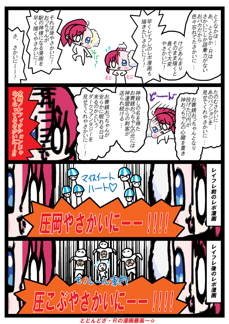 レイフレのレポ漫画じゃないレポ漫画をどざさんの抜群の記憶力を元に描くもととなかがおバカでちゃんと描けなかったレポ漫画を描きましたので見てください。