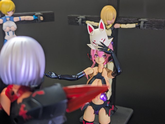 せっかく磔を見られたので、一緒に……なんでこの子はいつもふてくされているのでしょう? #メガミデバイス #アルカナディア