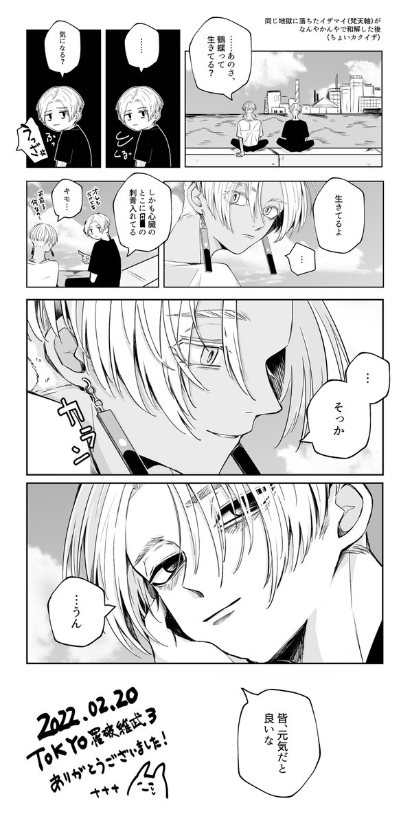 通販予約と支部にサンプルあげました💜 2/20 TOKYO罹破維武3発行予定のイザマイ本。 梵天マイが死後、地獄に落ちたらイザナがいた話。 『地獄+』A5/36P(西3F23a)※状況により欠席する可能性あり ◆通販:ec.toranoana.jp/joshi_r/ec/ite… ◆pixiv:pixiv.net/artworks/96051… 何卒宜しくお願い致します💜