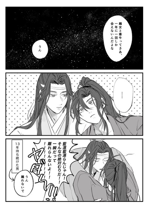 『ordinary day』(忘羨) 忘羨がしゃべってるだけの短い話です。なんと一歩も動きません!連休最終日で虚無になってるみんなは明日から、普通に今日も明日も仕事のみんなは明日も、がんばろ〜ね poipiku.com/7077058/868020…