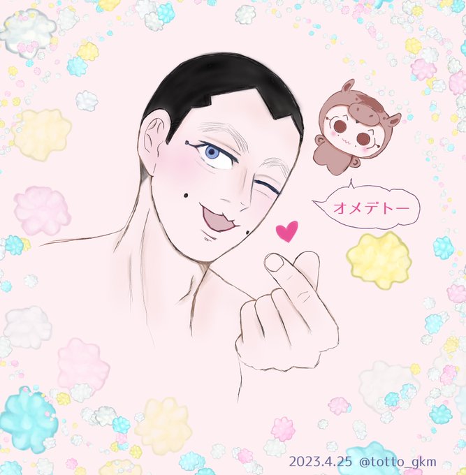 6 34 4月生まれの全ての皆様にー😊 宇佐美とうまみくんからお祝い申し上げます✨✨ 実は私も4月生まれで牡羊座です💗 お祝い絵を自給自足🎂服を着ていないね!サービスサービス🫶 フォロワーのめいめいさん、わんたんさん、りょんさん、表記のないかたもいらっしゃるかな?おめでとうございました! 23/04/25 20:41