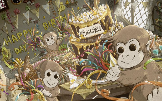 誕生日絵!!🐒🐒 久しぶりの創作!!ちまちま描き進めてようやく完成しました〜 #イラスト #illustration #創作