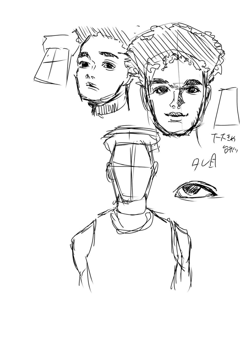 =1週間イラスト制作!= #イラスト [1日目] アイデア出し(載せてないけどメモが有ります)・ファンアートなので顔練習・カラーラフいくつか