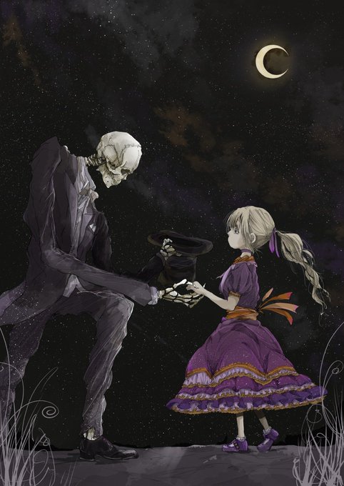 12 65 「Shall we dance?」 #illustration #イラスト #HappyHalloween2021 #halloween2021 #ハロウィンイラスト #絵描きさんと繋がりたい 21/10/31 22:03
