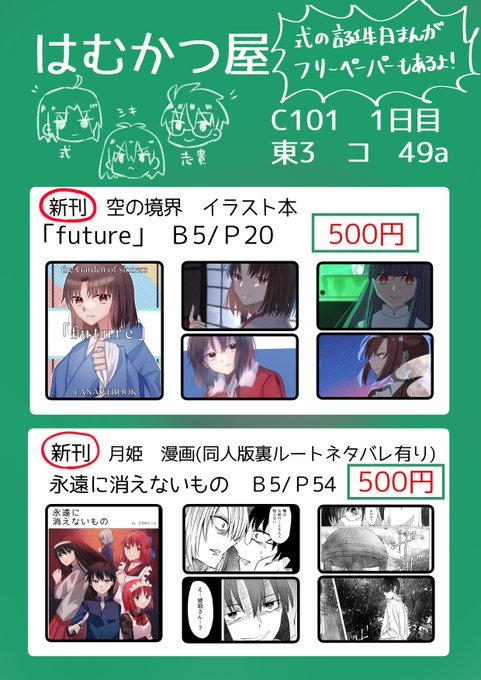 冬コミのお品書きです。 新刊2つとフリーペーパー持っていきます✌ よろしくお願いします😊 pixiv↓サンプル pixiv.net/artworks/10378…
