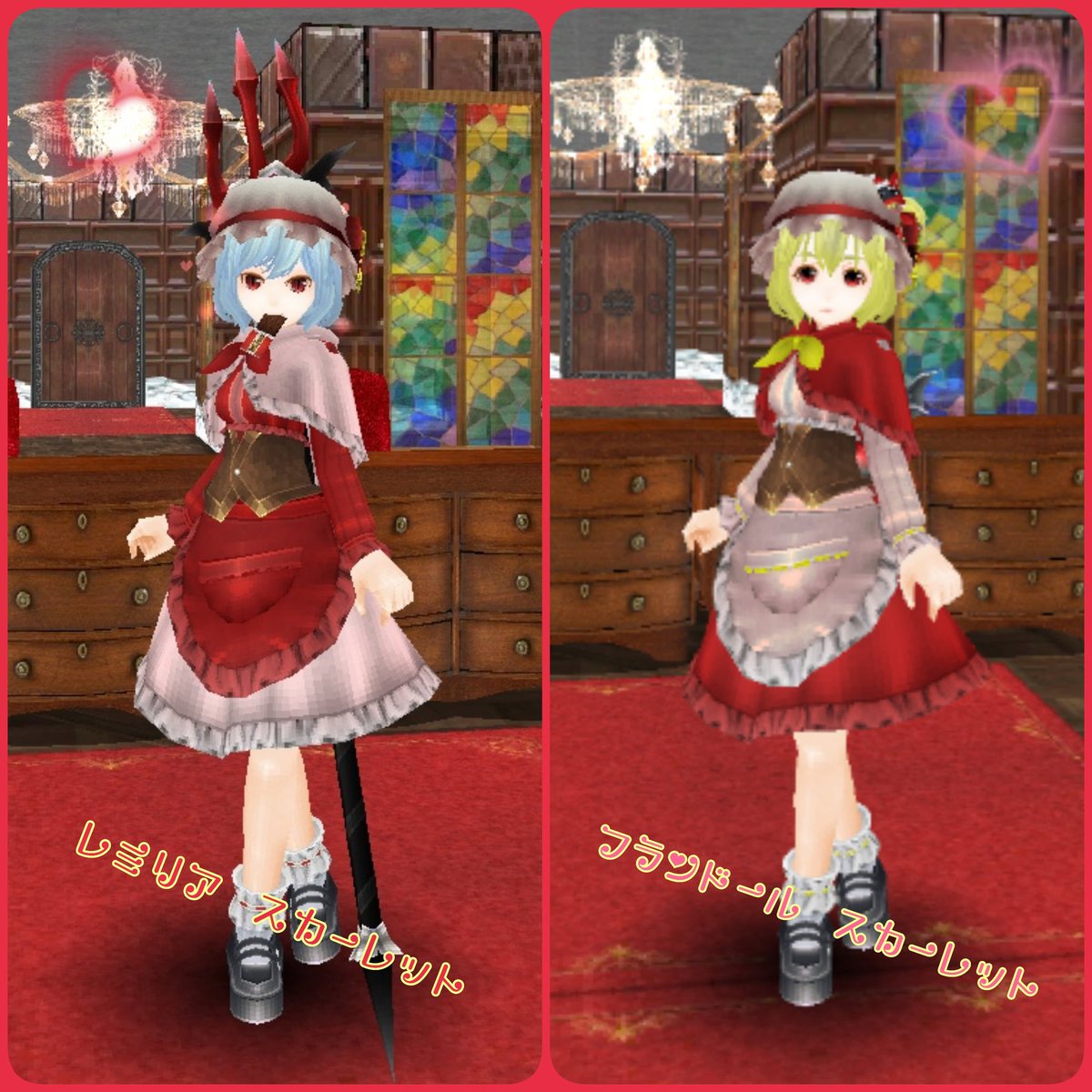 昨日に引き続き…作りました★ 東方のレミリア・スカーレットです🦇 迷宮パラ(弓)で作ったのですが…一部装備を共有している槍パラでもやってみました💕 オシャレOFF»ラブリチョコ🍫 オシャレON»🦇の羽でかなり迷いました #トーラムオンライン #トーラム #コスプレ #レミリア・スカーレット